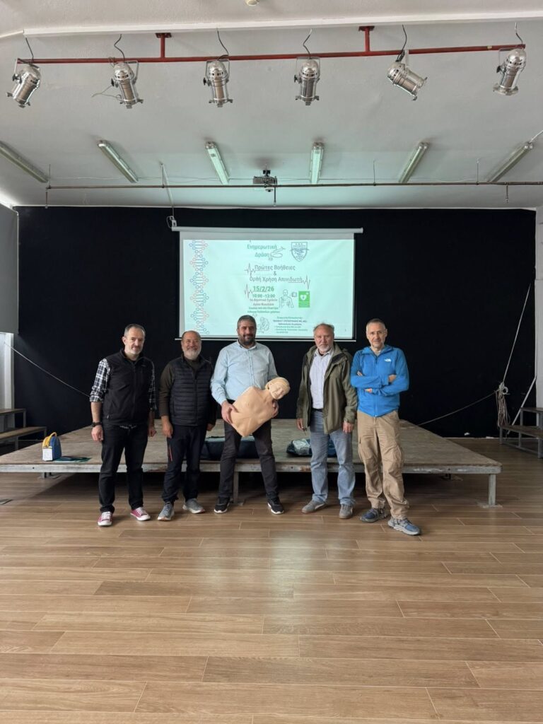 February 9, 2026Βασική εκπαίδευση πρώτων βοηθειών και σωστής χρήσης απινιδωτή έγινε τις πρωινές ώρες της Κυριακής 15/02/26 από τον ιατρό κ. Ιωάννης Γ. Ρουκουνάκης.